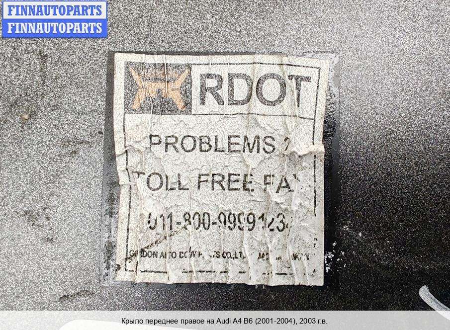 Компания FINNAUTOPARTS занимается продажей контрактных (б/у, бывших в употреблении) запчастей для иномарок. В нашей компании продаются только оригинальные запчасти из Европы, Японии и Кореи, которые не имеют пробега по РФ. Если вы хотите приобрести переднее крыло (правое) для а/м Ауди А4 Б6, смело обращайтесь в нашу компанию. Все наши менеджеры — профессионалы своего дела, и с удовольствием помогут вам купить запчасти, в том числе, передние крылья правые, на Audi A4 (8E/8H, B6) и другие автомобили.